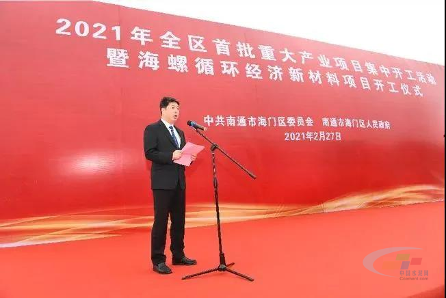 2月27日上午,江蘇省南通市海門(mén)區(qū)委、區(qū)政府在海門(mén)港新區(qū)海螺新材料項(xiàng)目現(xiàn)場(chǎng)舉行2021年全區(qū)首批重大產(chǎn)業(yè)項(xiàng)目集中開(kāi)工活動(dòng),動(dòng)員全區(qū)上下堅(jiān)定必勝信心,激發(fā)昂揚(yáng)斗志,大干快干、埋頭苦干、真抓實(shí)干,努力開(kāi)創(chuàng)施工項(xiàng)目熱火朝天、竣工項(xiàng)目接二連三、儲(chǔ)備項(xiàng)目源源不斷的生動(dòng)局面,為勇當(dāng)“兩爭(zhēng)一前列”領(lǐng)跑者提供強(qiáng)勁支撐。