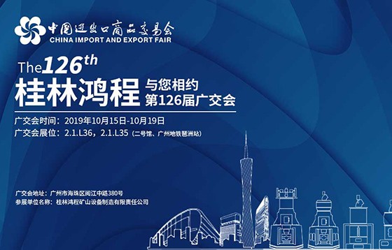 第126屆廣交會開幕在即,磨粉機實力派桂林鴻程與您如期相約! 金秋送爽的時節,美麗羊城將再次迎來一次貿易盛會,即第126屆中國進出口商品交易會(以下簡稱廣交會...